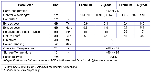 Products > 1x2 (2x2) Compact Fused PM Fiber Splitter (Mixer)