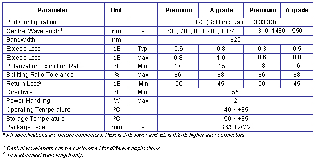 Products > 1x3 Fused PM Fiber Standard Splitter