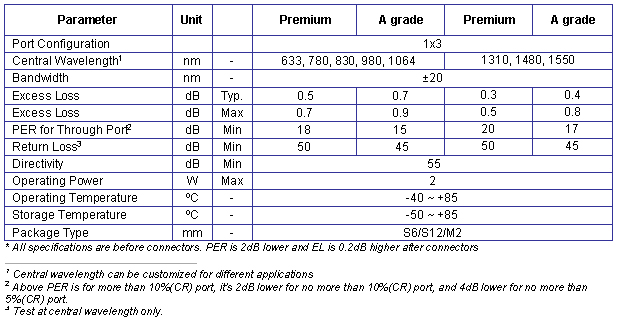 Products > 1x3 Fused Hybrid PM Fiber Standard Tap