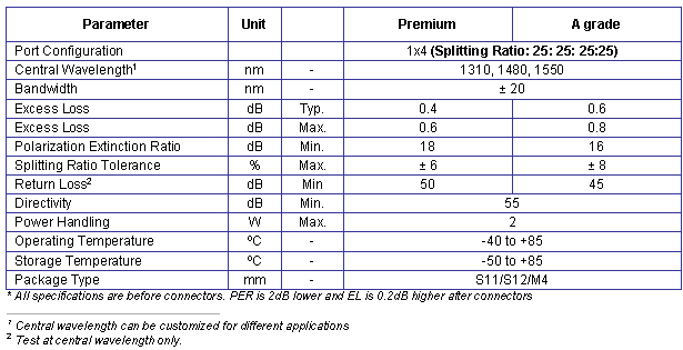 Products > 1x4 Fused PM Fiber Standard Splitter