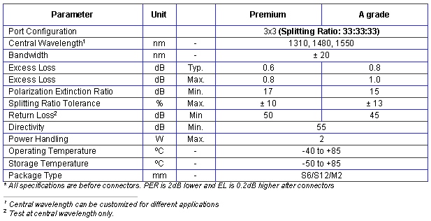 Products > 3x3 Fused PM Fiber Standard Splitter