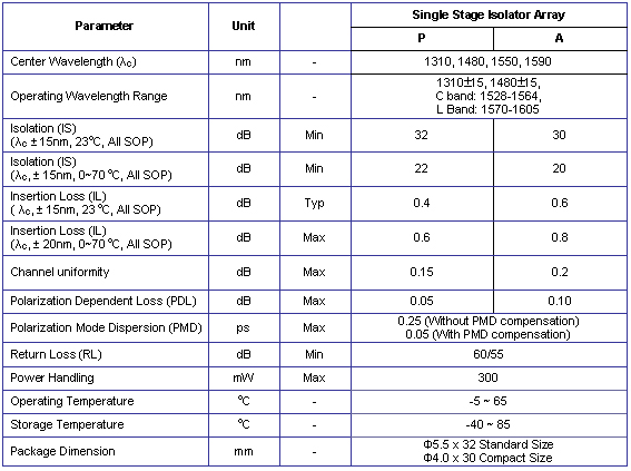 Products > Polarization Insensitive Isolator Array (Single Stage)