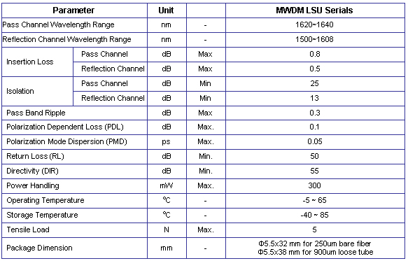 Products > L Band Supervisory (1610nm~1640nm) Channel MWDM