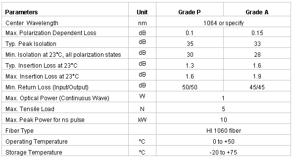Products >> 1W Polarization Insensitive Isolator for Pulse Applications