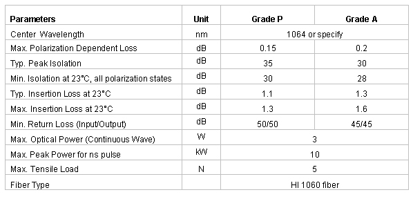 Products >> 3W Polarization Insensitive Isolator for Pulse Applications