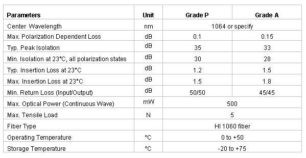 The High Power Polarization Insensitive Isolator is characterized with low insertion loss, high isolation, high power handling, high return loss, excellent environmental stability and reliability. It is ideal for fiber laser and instrumentation applications