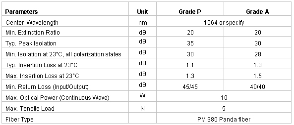 The High Power Polarization Maintaining Isolator is characterized with low insertion loss, high isolation, high power handling, high return loss, excellent environmental stability and reliability. It is ideal for fiber laser and instrumentation applications