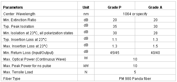 Products >> 10W Polarization Maintaining Isolator for Pulse Applications
