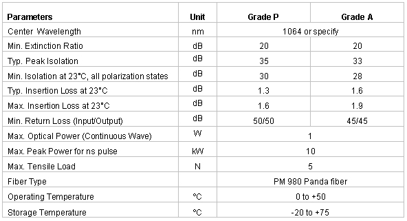 Products >> 1W Polarization Maintaining Isolator for Pulse Application