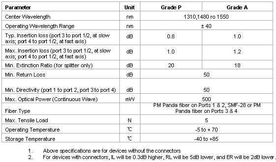 polarization signals into one or two output fibers. The most common